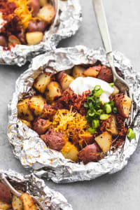 Steak and potatoes. Name a better duo. Accompany your proteins with baked potatoes filled with, cheese, bacon, and all Dad’s favorite fixings.